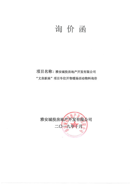 雅安城投房地產(chǎn)開發(fā)有限公司詢價(jià)函