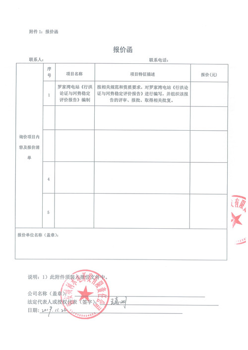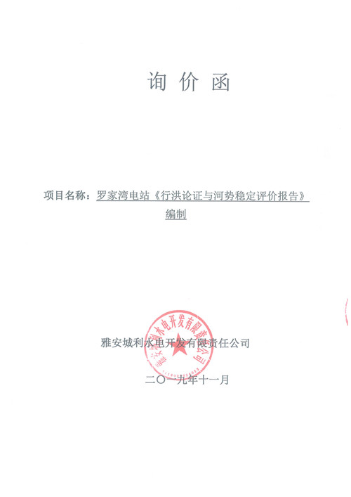 羅家灣電站《行洪論證與河勢穩(wěn)定評(píng)價(jià)報(bào)告》編制詢價(jià)函