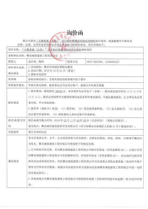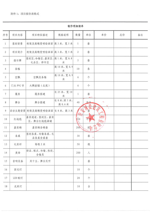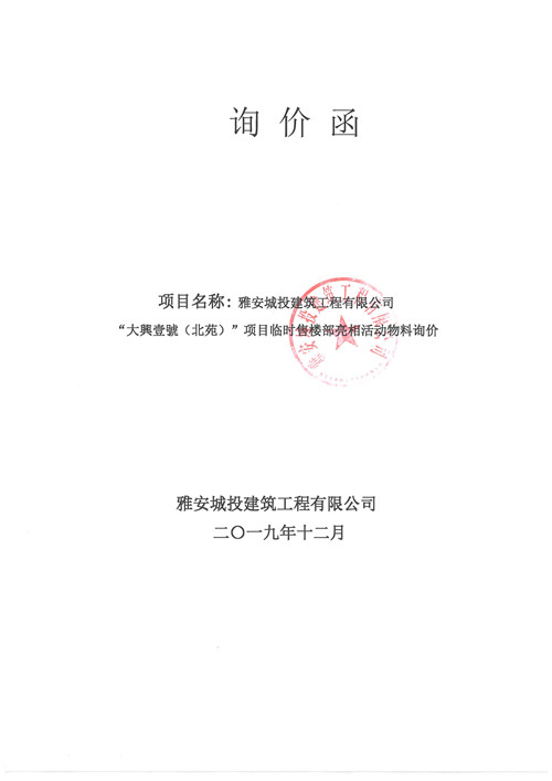 大興壹號(北苑)項(xiàng)目臨時(shí)售樓部亮相活動(dòng)物料詢價(jià)函