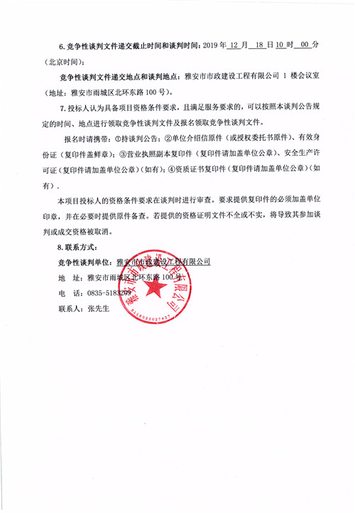 雅安市市政建設工程有限公司年度鋼材供應商競爭性談判公告