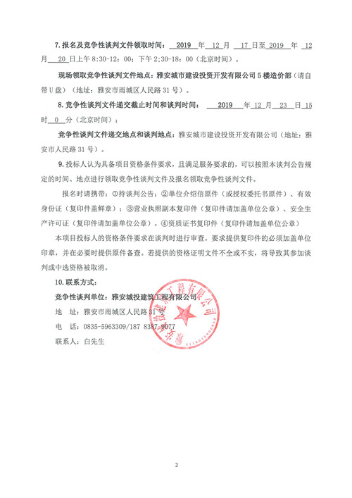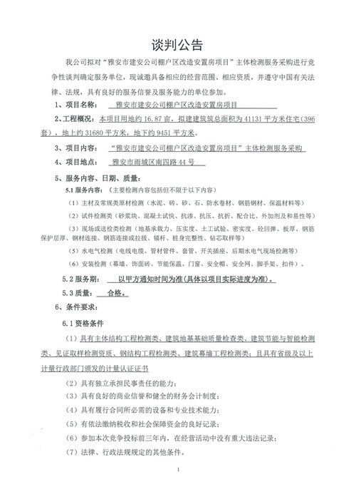 雅安市建安公司棚改區(qū)改造安置房項目主體檢測服務(wù)競爭性談判公告