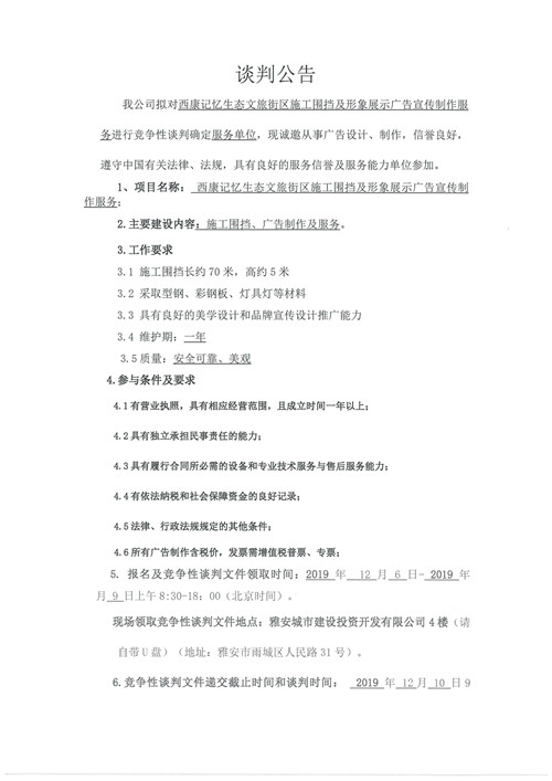 西康記憶生態(tài)文旅街區(qū)施工圍擋及形象展示廣告宣傳制作服務競爭性談判公告