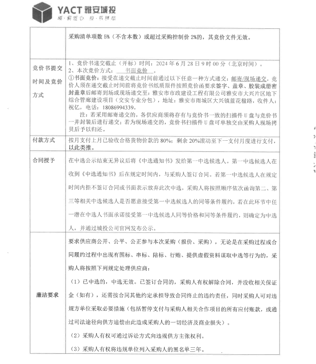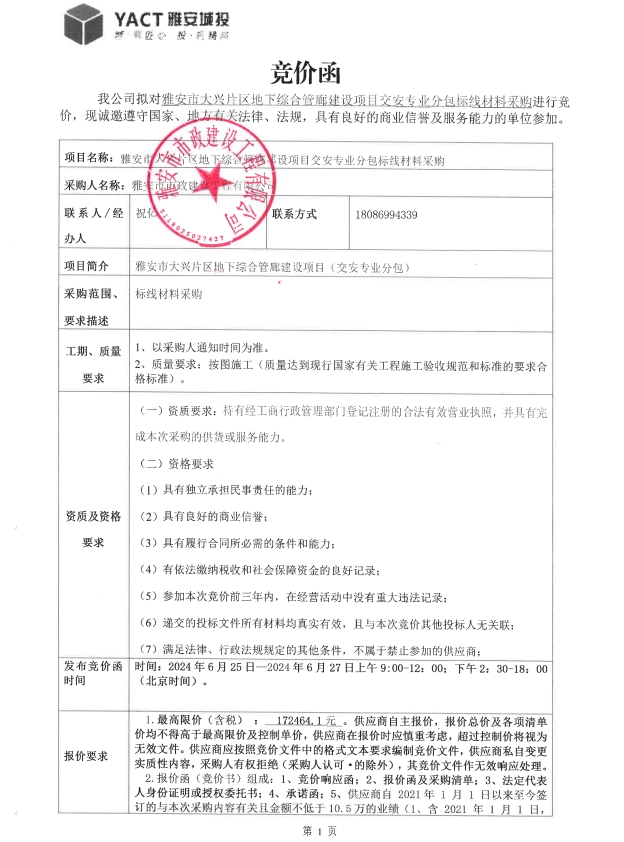雅安市大興片區(qū)地下綜合管廊建設(shè)項(xiàng)目交安專(zhuān)業(yè)分包標(biāo)線材料采購(gòu)競(jìng)價(jià)公告