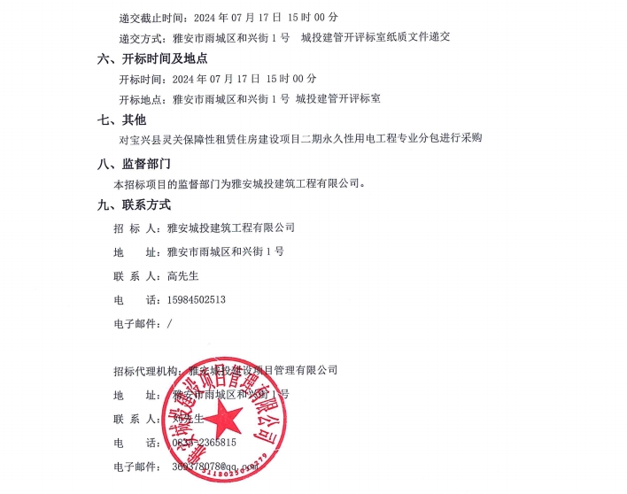 寶興縣靈關(guān)保障性租賃住房建設(shè)項目二期永久性用電工程專業(yè)分包公告