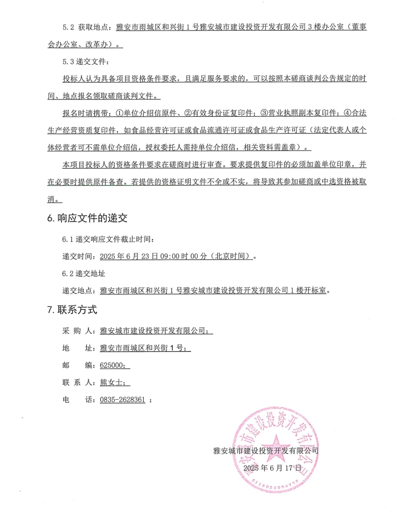 雅安城市建設投資開發(fā)有限公司城投辦公樓食堂食材(肉類及蔬果類)采購項目磋商談判采購公告